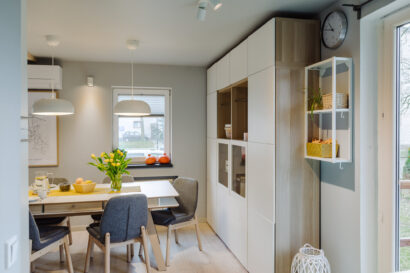 Nieruchomość była cały czas zamieszkana przez rodzinę właścicieli, więc nie było możliwości zrobienia stylizacji wcześniej, np. dzień przed sesją. W tej sytuacji przyjechałam około godzinę przed fotografem i zaczęłam stylizację od pomieszczeń, które jako pierwsze miały zostać sfotografowane. Kiedy fotograf robił pierwsze zdjęcia, ja stylizowałam kolejne pokoje. Dzięki mojej obecności w czasie sesji zdjęciowej i dobrej współpracy z fotografem (była to nasza kolejna wspólna realizacja), mogłam na bieżąco konsultować poszczególne ujęcia.