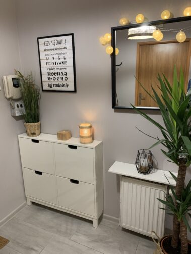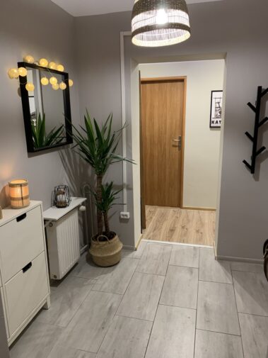 To było jedno z pierwszych mieszkań, w którym przeprowadzałam Home Staging. Właściciele zgłosili się do mnie w sierpniu z prośbą o przygotowanie listy zakupowej, koncepcji homestagingowej i nadzór nad realizacją. Działania dotyczyły części wspólnych mieszkania wynajmowanego na pokoje – przedpokoju, kuchni i kącika obiadowego.