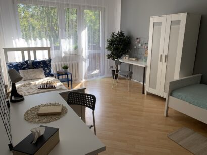 Mieszkanie na wynajem na pokoje wymagało szybkiego przystosowania po poprzednich najemcach, którzy wyprowadzili się nagle i pozostawili je w bardzo złym stanie. Meble i ściany były mocno zdewastowane. Właściciele odezwali się do mnie na początku września z prośbą o przeprowadzenie szybkiego Home Stagingu z najbardziej podstawowym remontem.